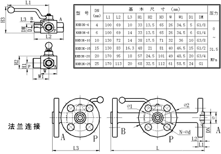 KHB3K型高壓三通球閥是依據(jù)國外資料研制而成,主要用于液壓管路中控制油液、氣的流通、流向和截止。本系列高壓多路球閥具有流阻損失小、密封性能可靠、操作方便、外觀精美等特點(diǎn)。本系列多路球閥主要由閥體、球體、閥桿、手柄和密封裝置等組成。閥體采用鋼質(zhì)鍛件,表面鍍鉻。同時(shí)也提供不銹鋼球閥。本系列高壓球閥主要有二種連接方式:內(nèi)螺紋連接、法蘭連接。